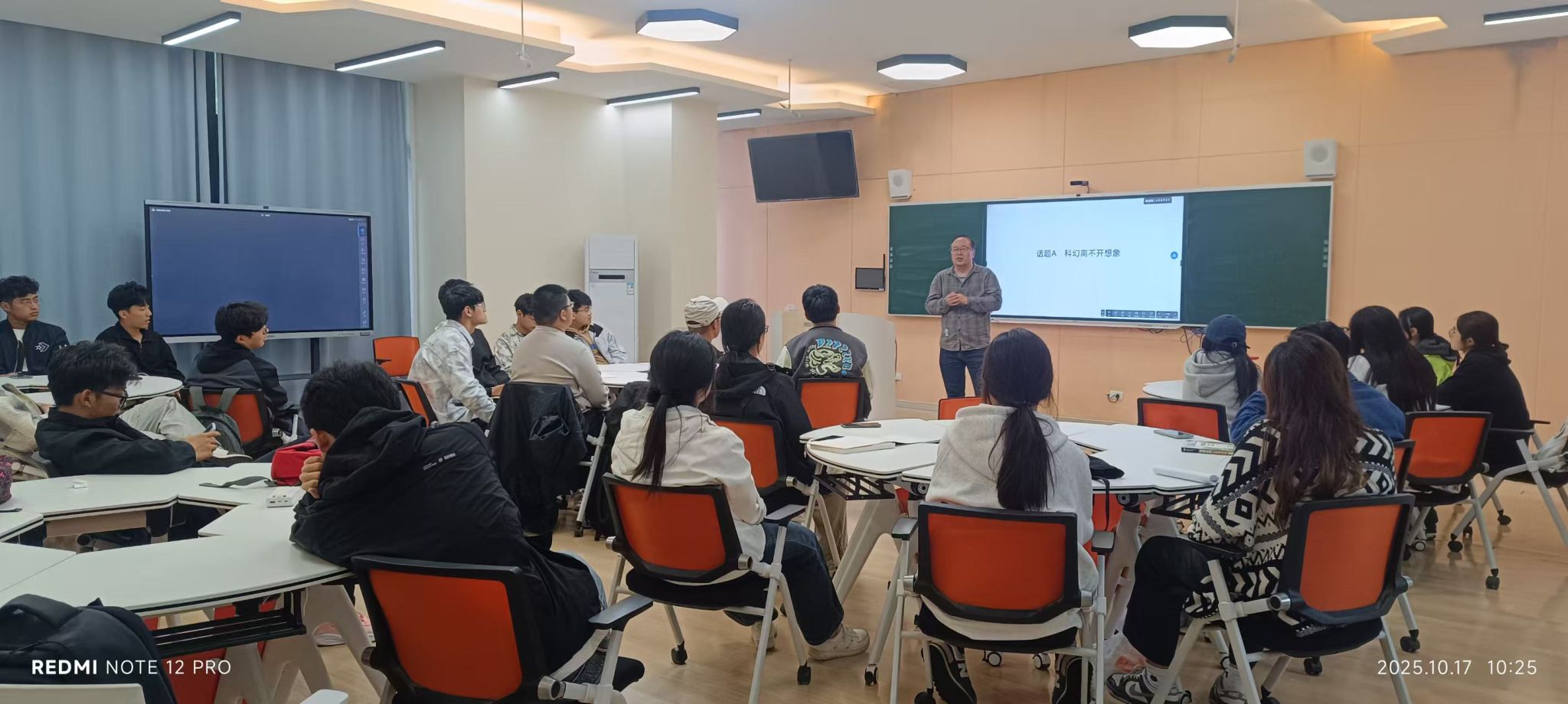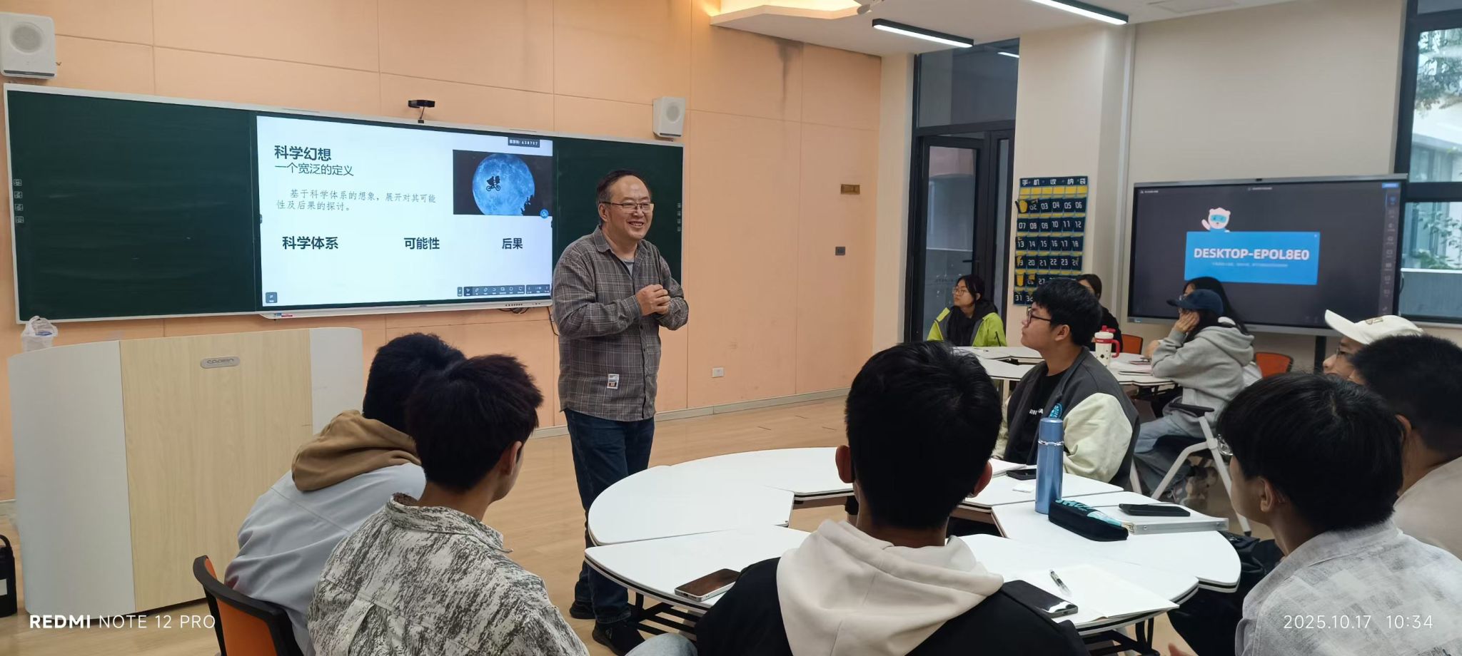 这场跨学科的双师授课,既以理论搭建了“从生活经验到创作”的清晰路径,又以趣味命题打开了想象闸门。不少学生课后直言:“原来写外星故事不用怕没头绪,把自己过节时的热闹记忆拆解开,把经验磨细、把虚构做实,再用虚构技法换个‘星球外壳’,就能写出既新奇又落地的场景。”