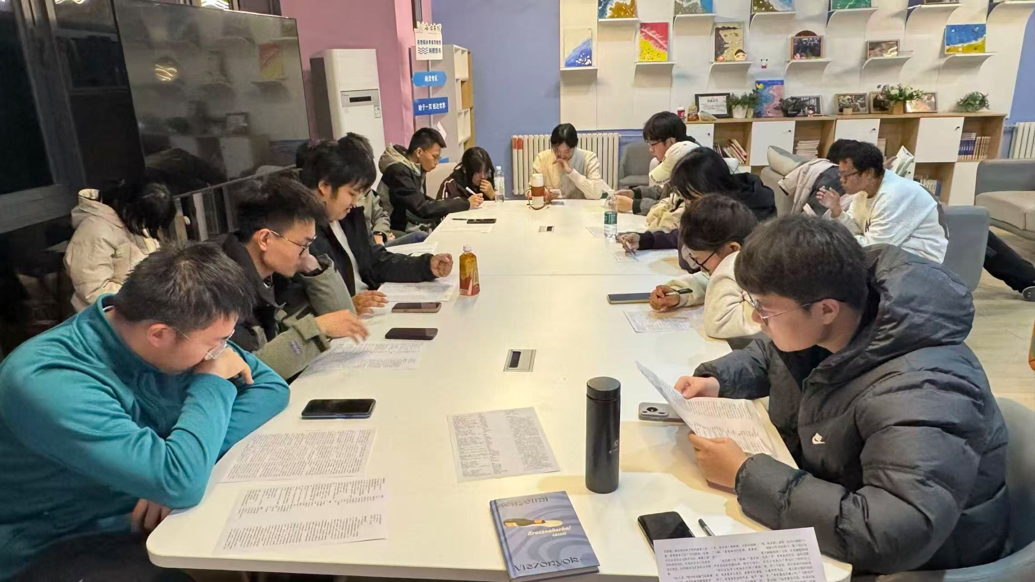 11 月 12 日晚,海右书院 110 房间被温暖的灯光温柔笼罩,第 26 期作家班作品研讨会在这温馨的氛围中如期拉开帷幕。23 名师生像久别重逢的老友,围坐在一起,围绕三组风格截然不同的作品,开启了一场深入又真诚的文学探讨之旅。这场持续一个半小时的交流,可不只是对文本的细细品读,更像是一场关于文学表达、创作边界与读者接受度的精彩思想大碰撞。