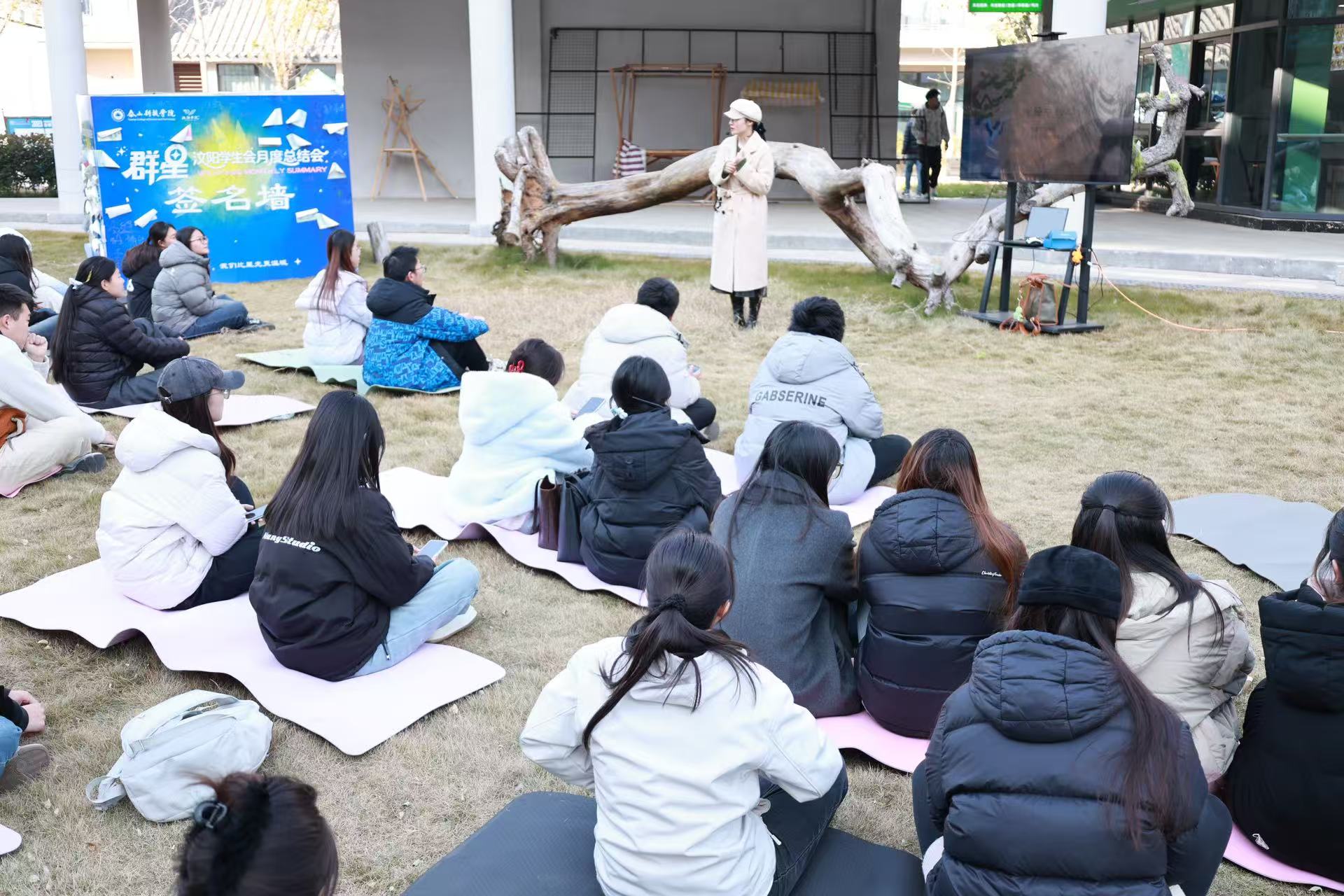 11月19日下午,由汶阳书院逸雅堂工坊主办、创意写作学院吴海峰、宋笑两位老师联合主讲的国画绘诗体验活动在汶阳书院荧光草地温情启幕。70名学子围坐草坪,在经典诵读与笔墨挥洒间,沉浸式感受《诗经》文化的深厚底蕴与国画艺术的独特魅力,让双院融合的育人理念在实践中落地生根。