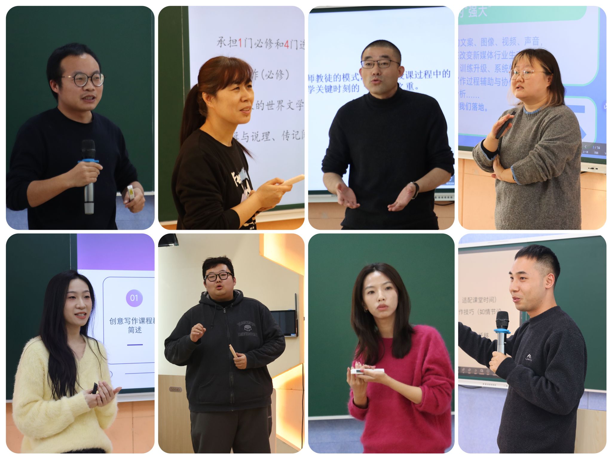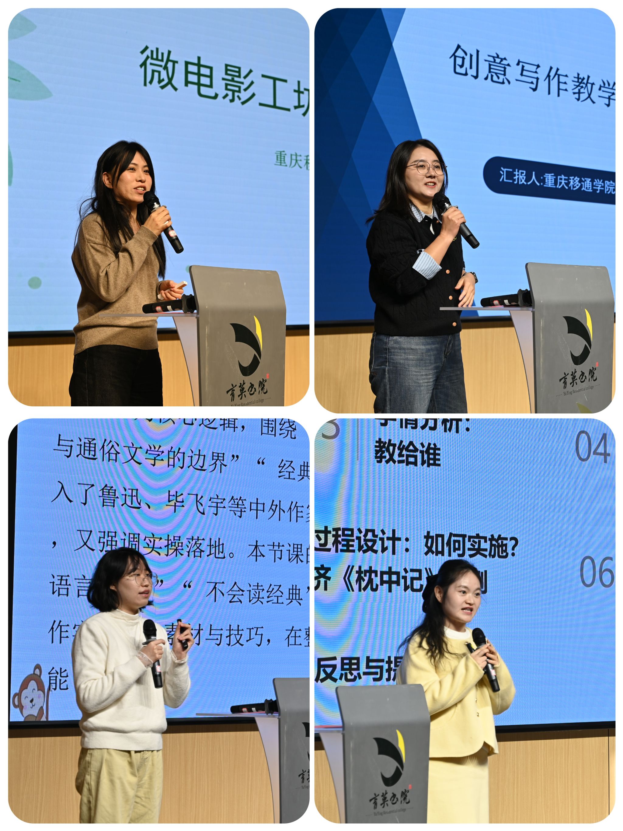 二会场聚焦“工坊制教学与研讨”,四校区的老师们就新媒体工坊教学、作家班情况介绍、AI写作应对策略和名校研修班四大核心议题展开了深入的交流。