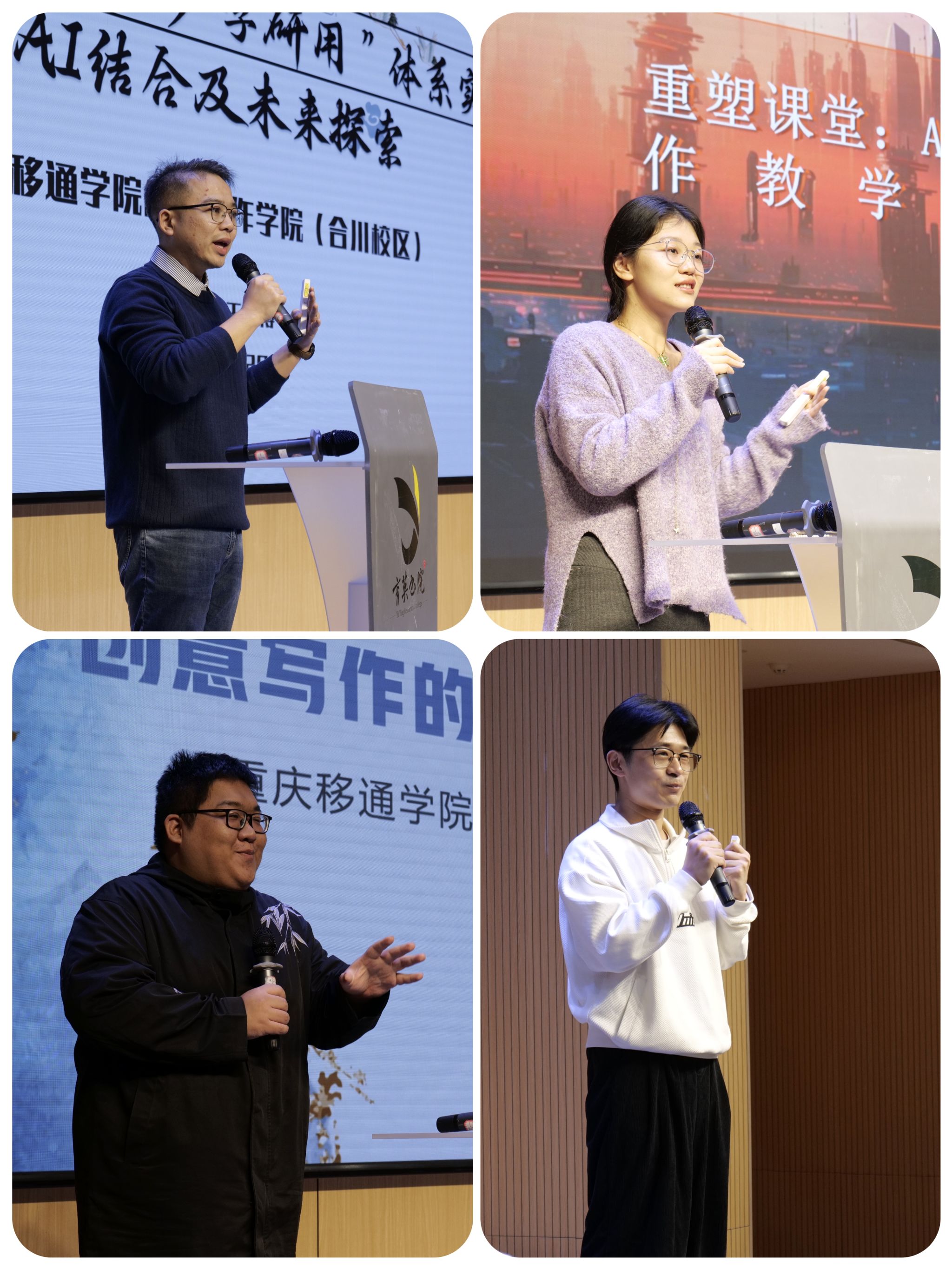 年会还从批判性的角度引发了教师们对AI创作主体性的哲学思考。重庆移通学院綦江校区的余盛凯老师指出,AI算法将接管创作者的部分理性功能,未来的创意写作若一味守旧将有被取代的风险。他主张重建“凝想—姿态”的写作发生现场,在技术洪流中牢牢把握人对意义生成的终极主导权。