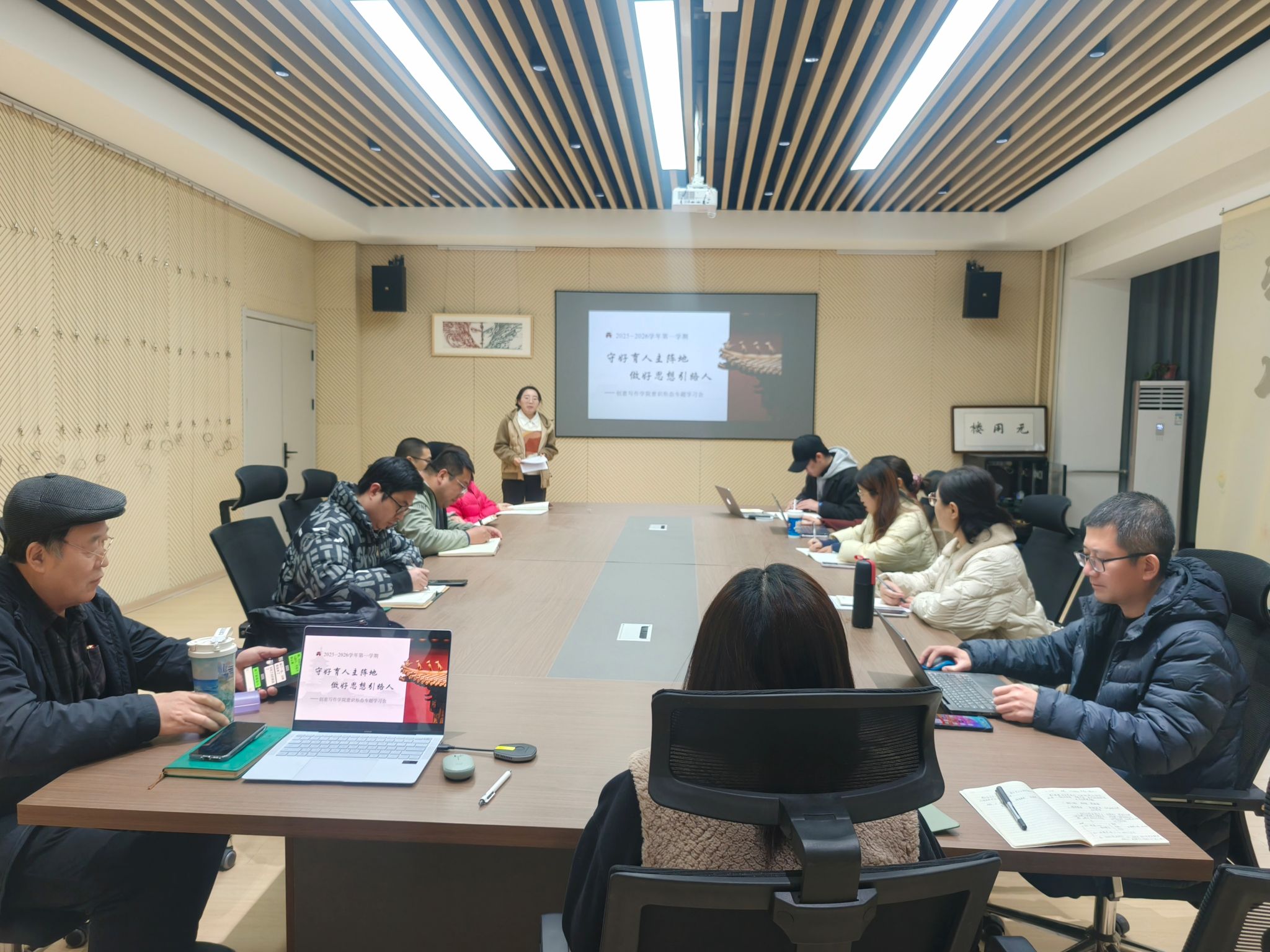 12月3日下午,创意写作学院与新闻采写产业学院在无用楼山海会客厅联合举办意识形态专题学习,教师们齐聚研讨,筑牢育人思想防线。