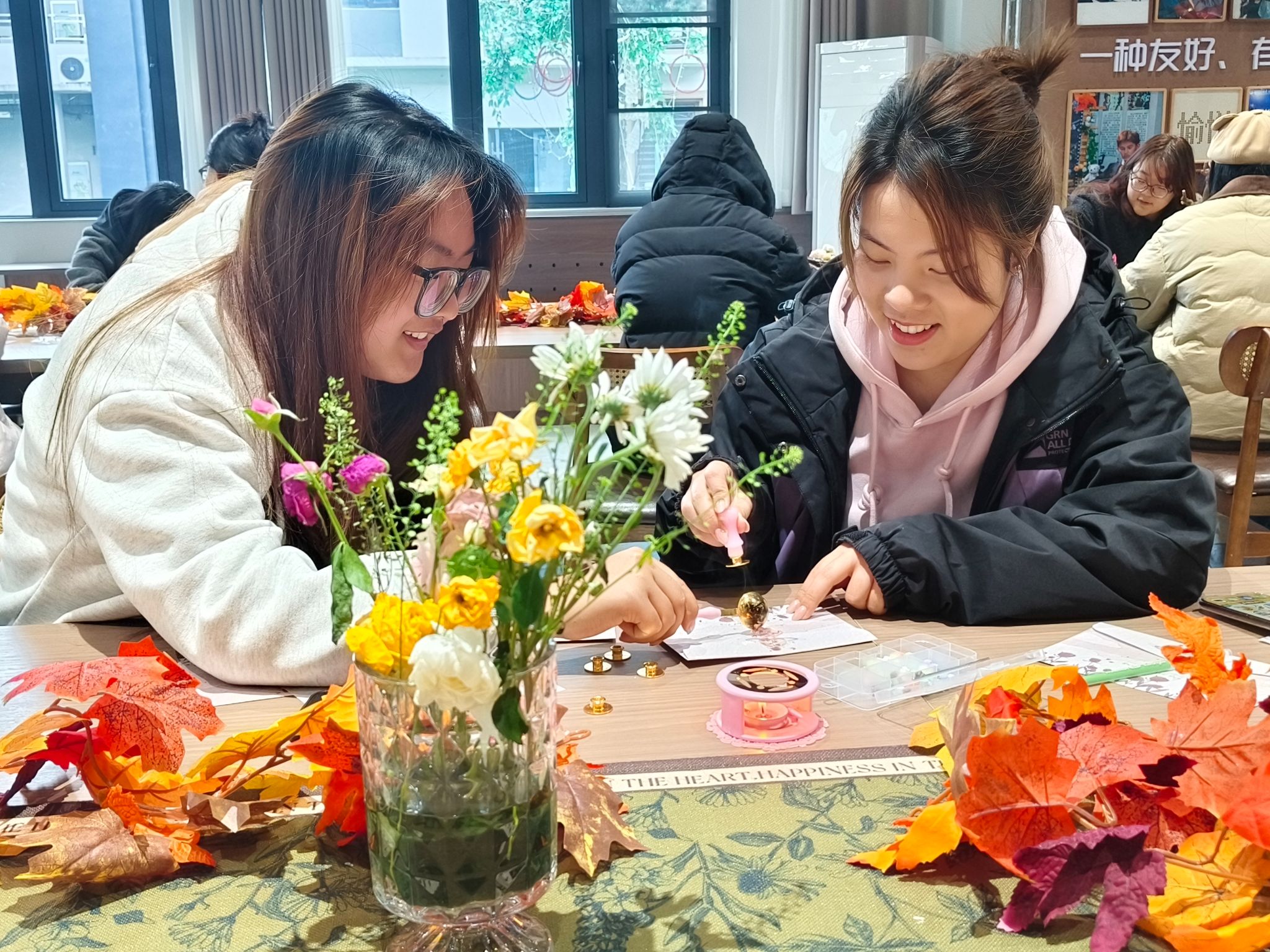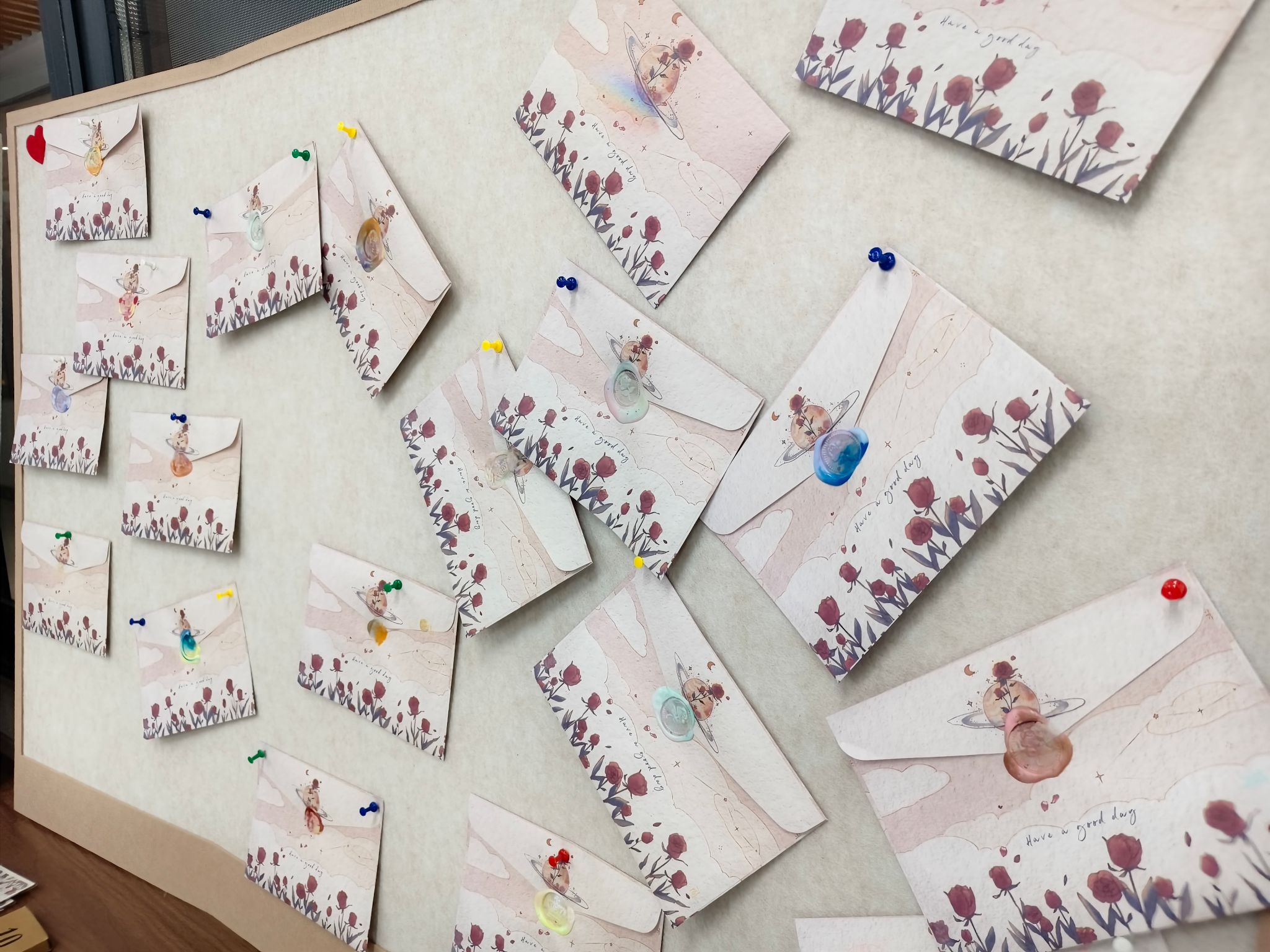 大家还搭配火漆印章,将对自己的期许与祝福封印在信封中,仪式感拉满!活动现场,大家将信封都封存到毛毡板上,每一份情感都自由流淌于笔尖。