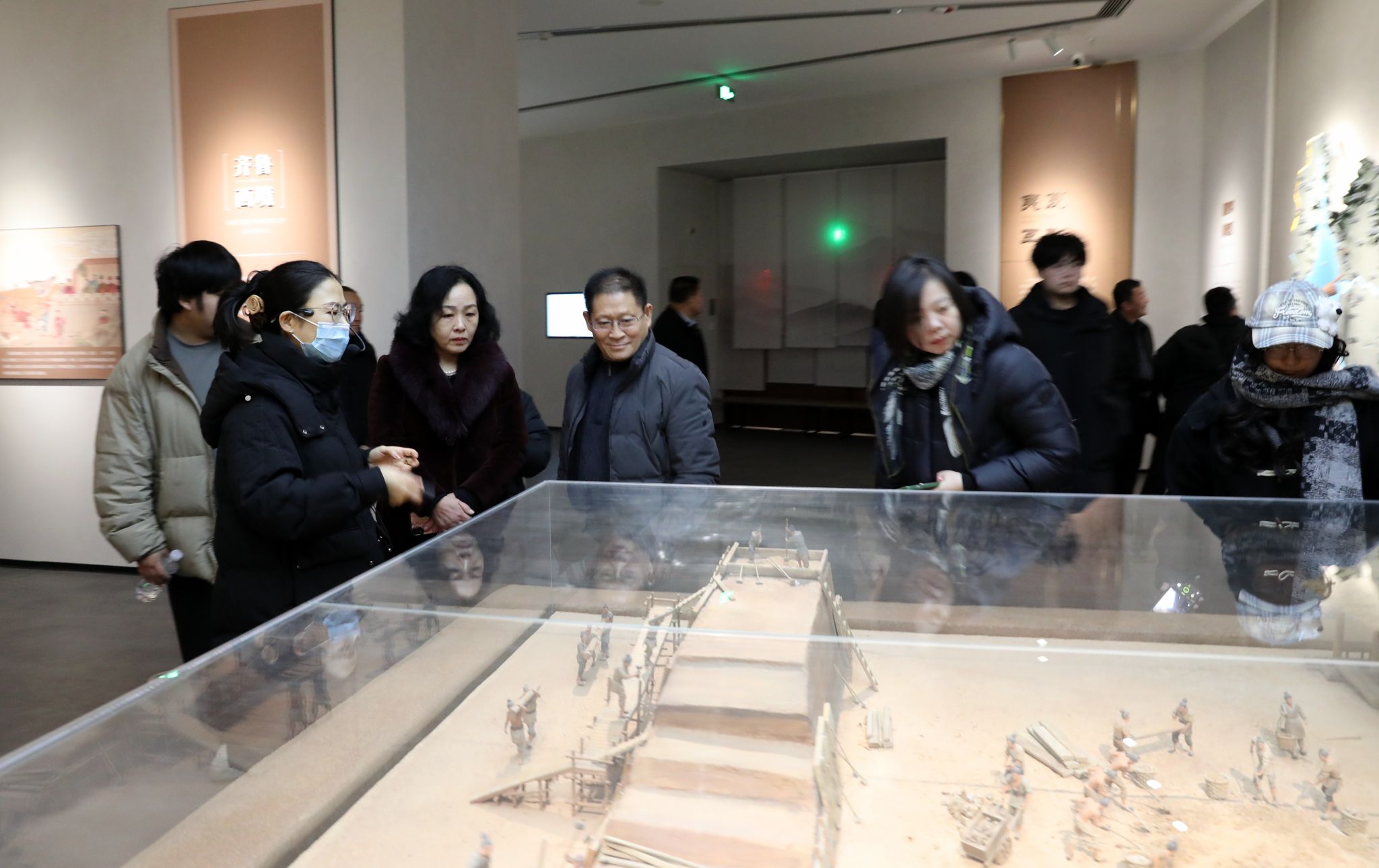 之后,采风团参观了东平县博物馆。作为国家二级博物馆,这里馆藏丰富,从汉代陶厨房、晋代错银虎符到元代东平路官印,一件件珍贵文物无声地诉说着东平数千年的文明演进。通过“东平古代历史文化陈列”“热血铸东原”“水韵东平”等专题展览,作家们系统了解了东平从古至今的历史变迁、人文精神与治水文化,触摸到了这片土地深沉的历史脉搏。