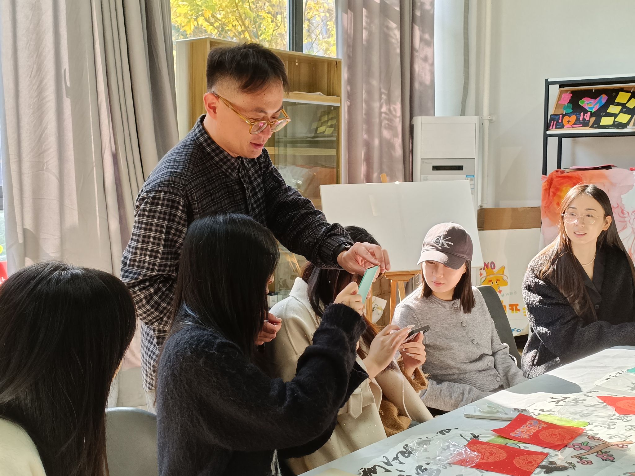 2025年11月24日午后,汶阳书院111室内,三缕阳光透过窗棂,悄然停驻于一方古朴的甲马木版之上。脑洞空间站工坊“拓印非遗,纸载吉祥——甲马版画体验活动”在此静谧启幕,在艺术传媒学院的程逸飞、李筱萱、米清羽等七位指导老师与组织者张灿、刘美麟的引领下,参与者以手为媒,以纸为载,开启了一场与千年民俗的深度对话。