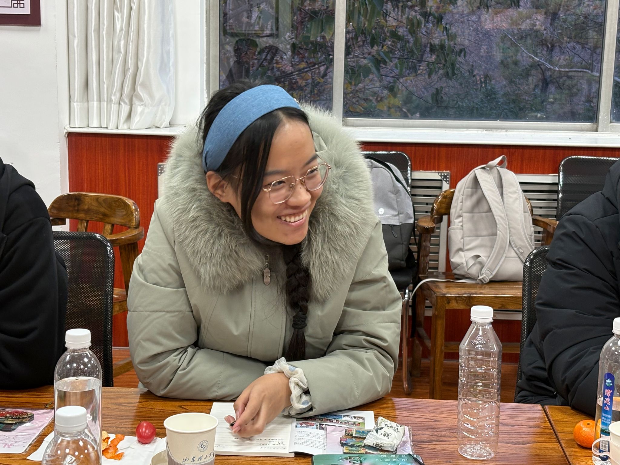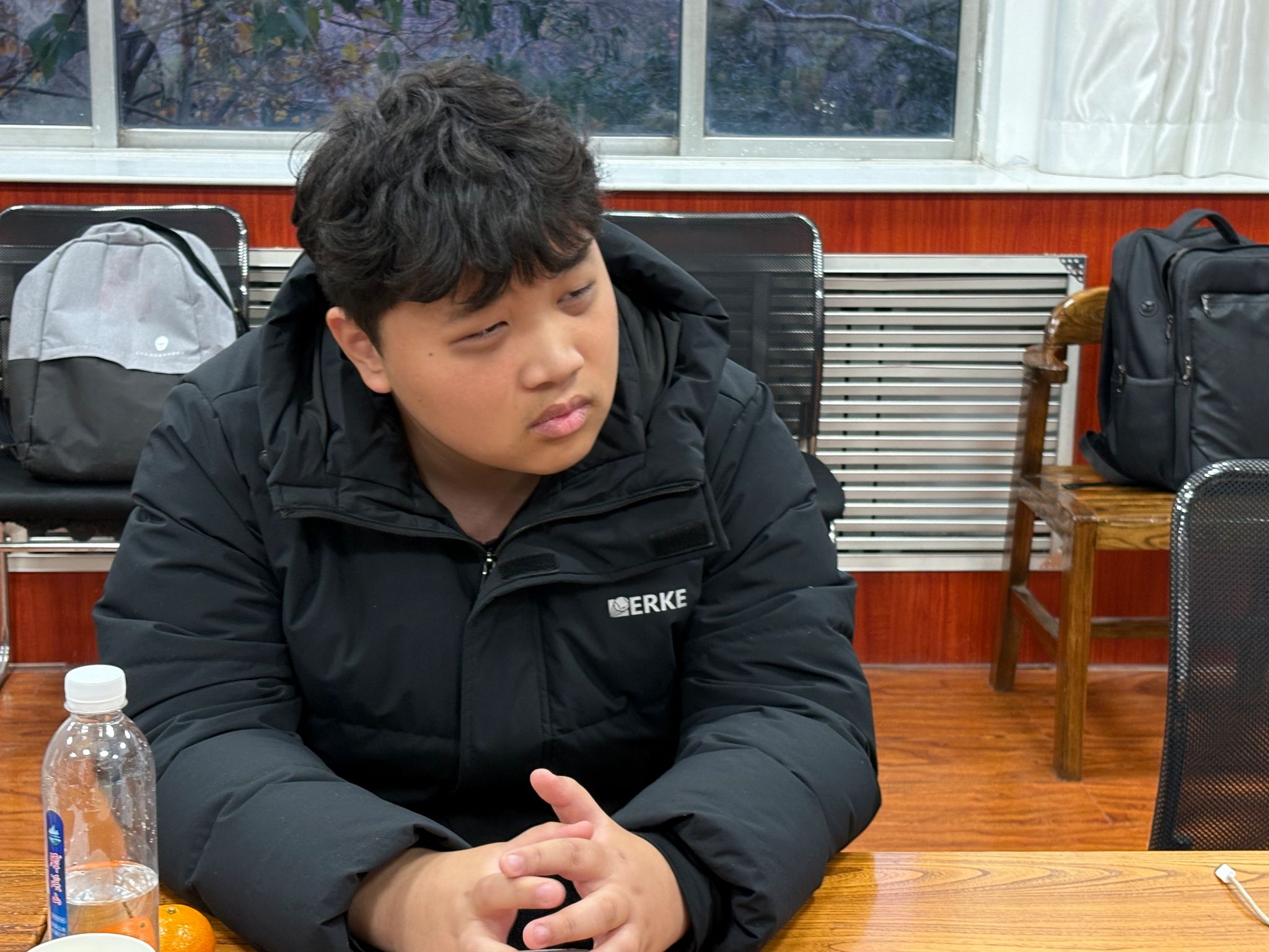 19.泰科学生孙烯烔正在聆听王晓梦老师回答自己的提问