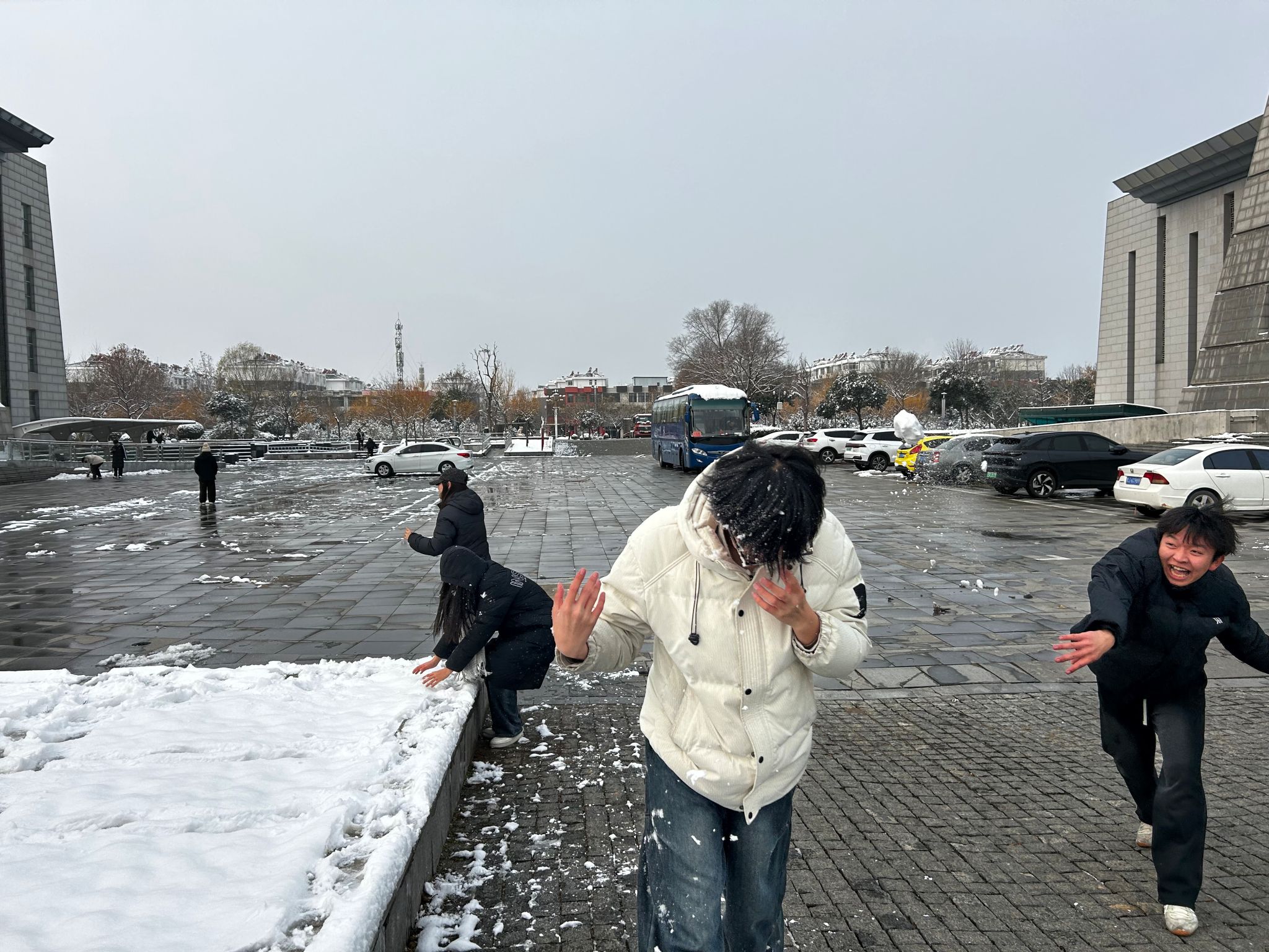 参观间隙,一场雪战不可避免。