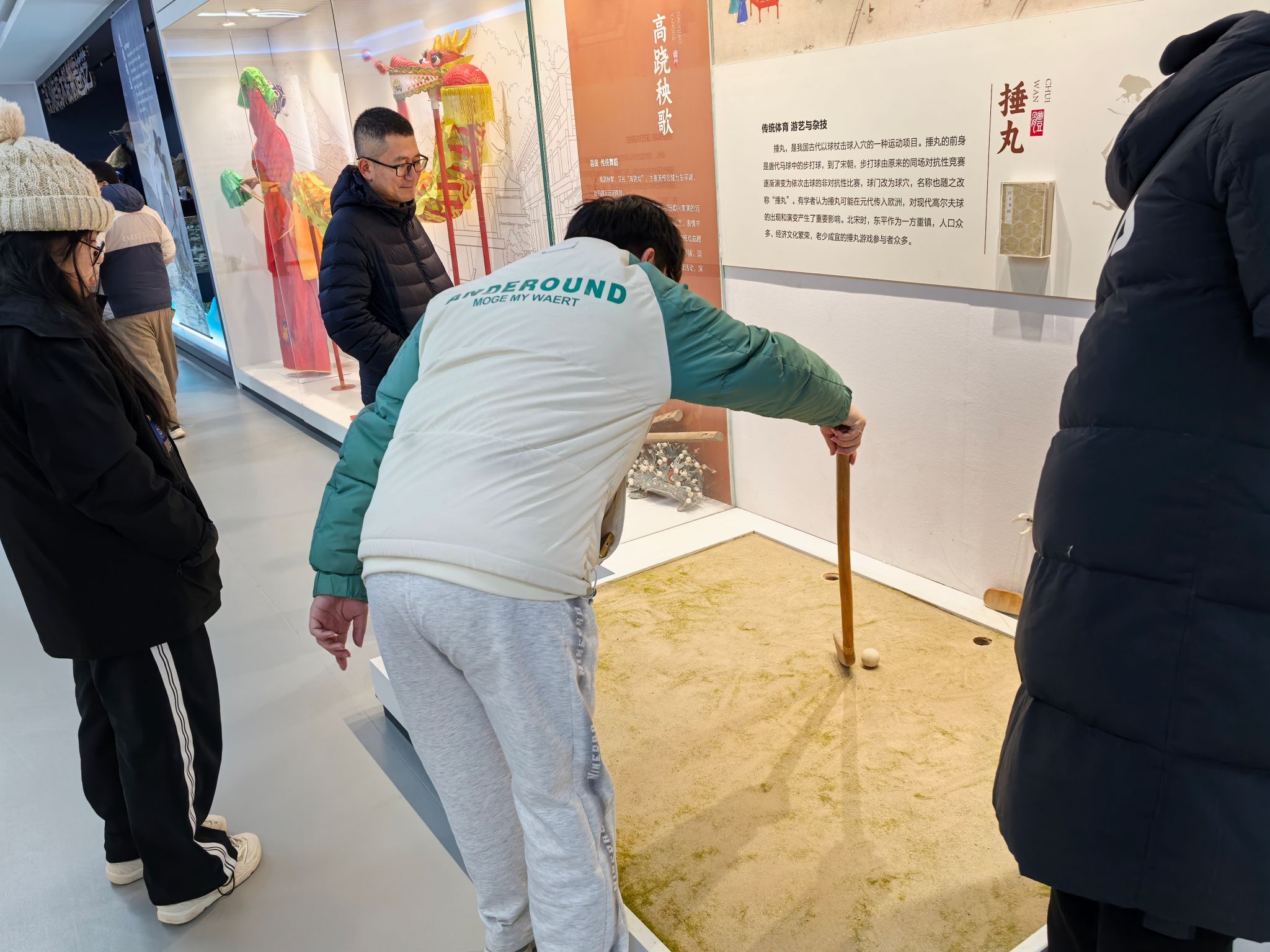 同学们亲身实践传统体育“捶丸”。
