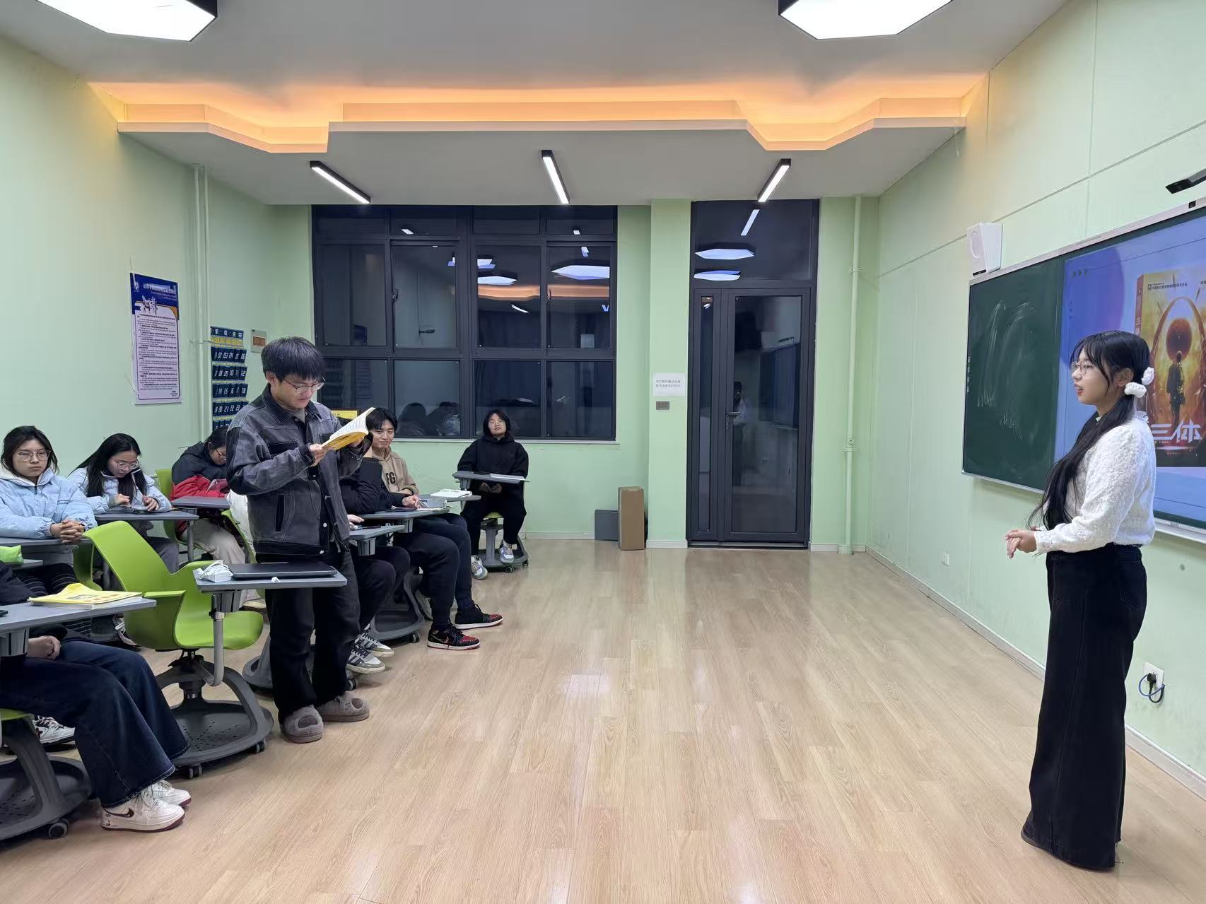 当孙秀芳老师引导大家剖析罗辑从“摆烂”到承担文明责任的转变时,不少同学在思考。“这不就是我们这一代人面临的问题吗?”赵鑫朔同学说,“如何在迷茫中找到自己的责任,如何在压力下坚持。”