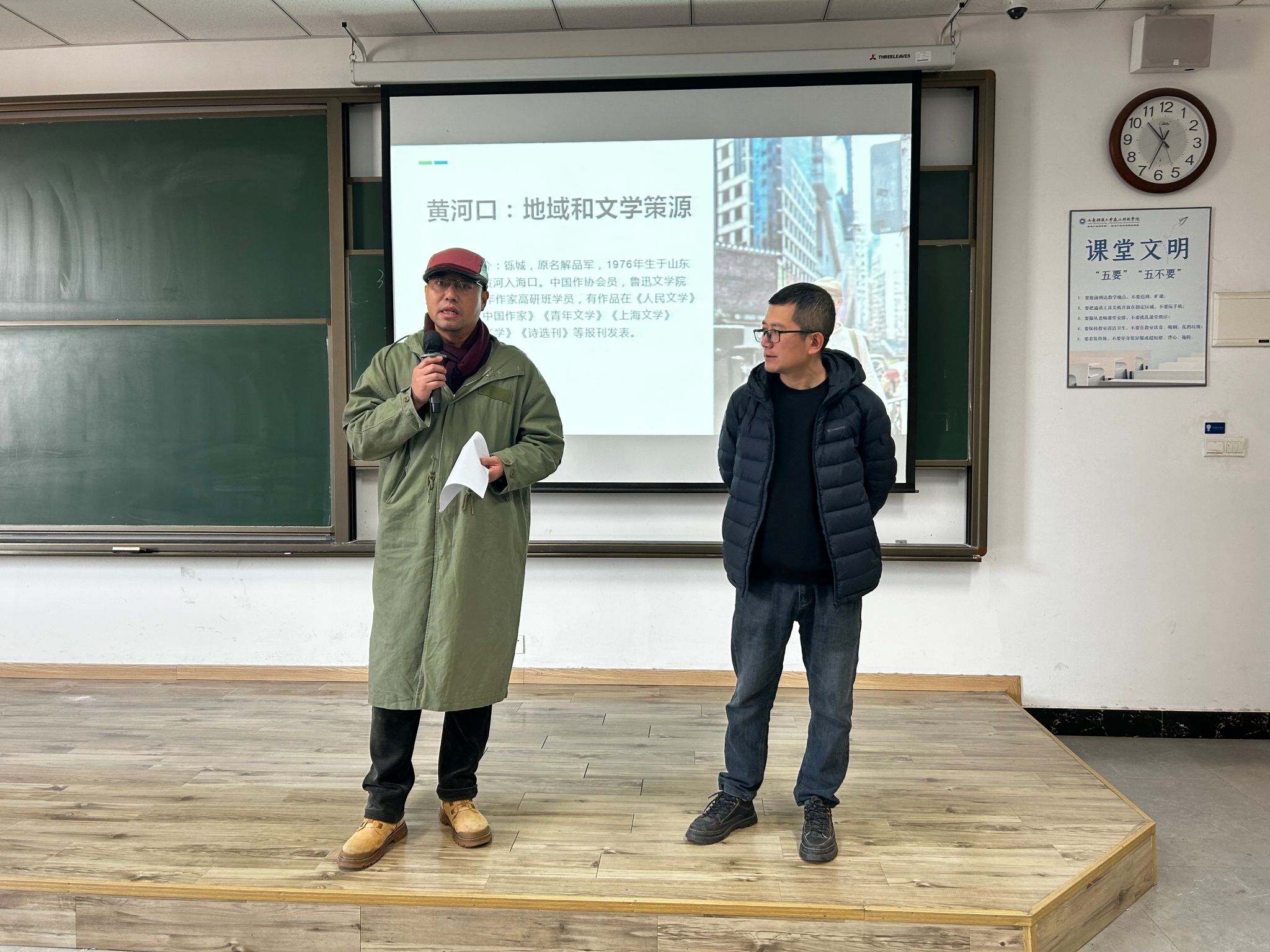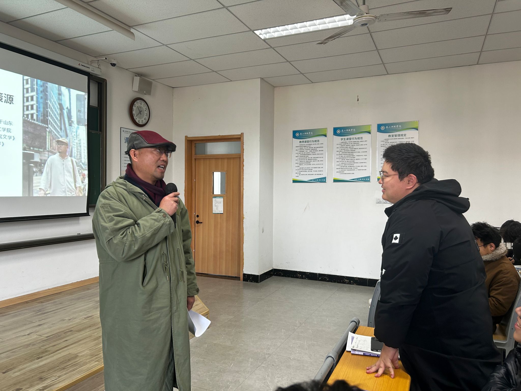 12月29日上午,1-316教室的创意写作课上,一场别开生面的双师授课开讲。课堂由诗人吴永强主持,特别邀请到刚从澳大利亚载誉归来的诗人铄城,与同学们一起聊创作、谈见闻、话故乡,让文学的种子在轻松的交流里悄然扎根。