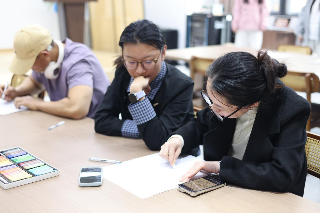 本次活动打破了传统单一的创作模式,巧妙地将视觉艺术与文学创作相结合,吸引了众多来自不同专业的学生踊跃参与。在温馨舒适的共膳厅氛围中,同学们暂时放下了学业的压力,共同探索内心深处的创意世界。