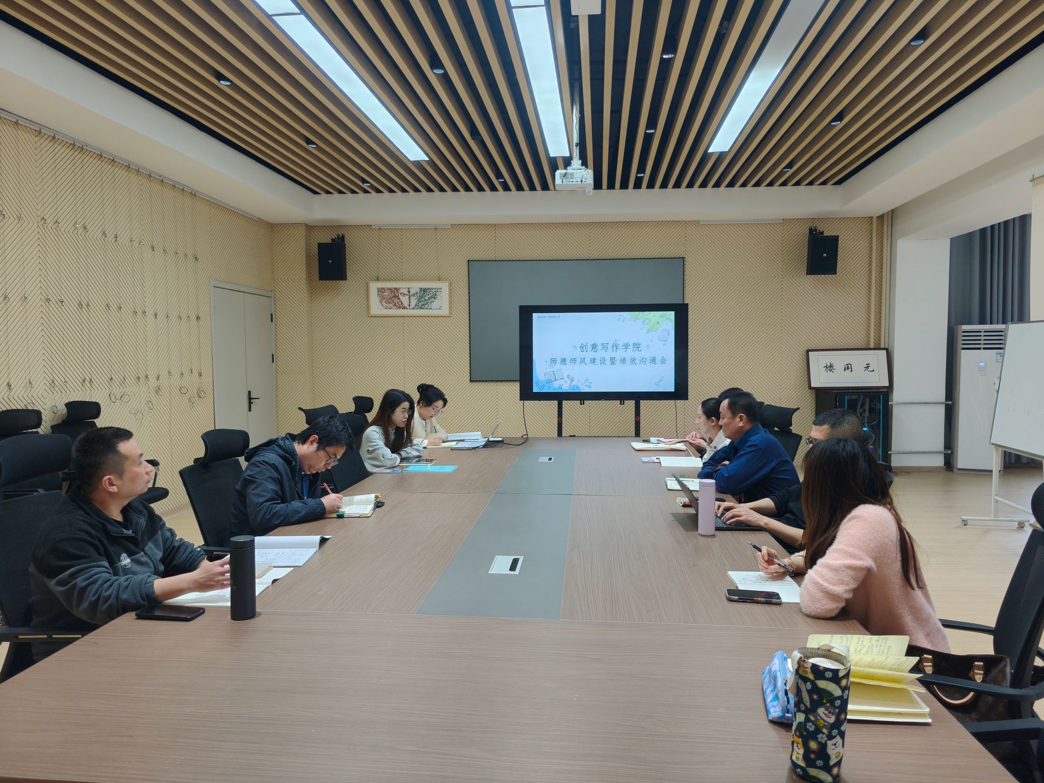 为进一步加强师德师风建设,规范教师教育教学行为,提升教学质量,同时做好教师绩效沟通与教学工作复盘,3月27日下午,创意写作学院师德师风建设暨绩效沟通会在无用楼山海会客厅召开。