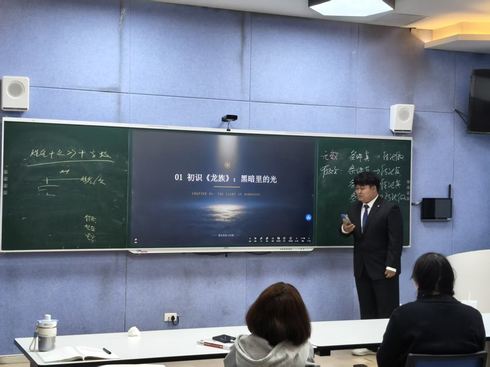 青年微课堂作为班级思想引领、文化交流的重要平台,始终以贴近青年、贴近生活为原则,挖掘青年学子喜闻乐见的内容与形式,让每一次分享都能触动心灵、引发共鸣。活动伊始,分享者以“黑暗里的光” 为切入点,将大家的思绪拉回那段被试卷、闹钟和高考倒计时填满的高三时光。分享者的话语瞬间引发了全体同学的共鸣,那些紧张、枯燥却又无比珍贵的奋斗时光,是每个人青春里最深刻的底色,而《龙族》的出现,如同在这段单调的岁月里洒下的一道光,为高压的学习生活注入了热血与幻想,成为了无数人青春中不可替代的存在。